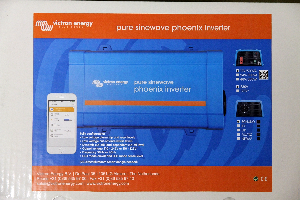 regelaar en 500VA omvormer van 12V naar 220 V. We zijn nu wat elektriciteit